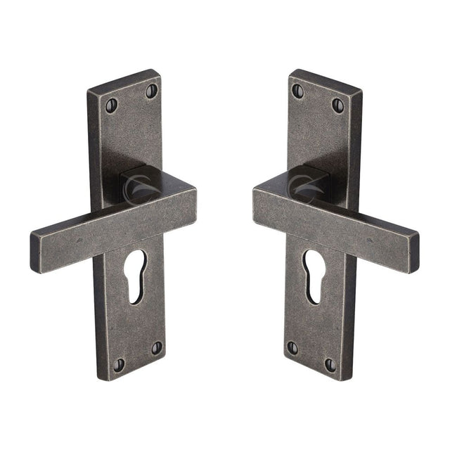 M. Marcus Rustic Pewter Door Handle Euro Profile Cheswell Design