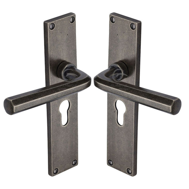M. Marcus Rustic Pewter Door Handle Euro Profile Octave Design