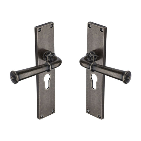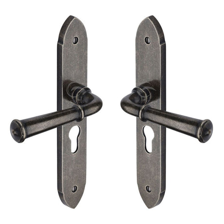 M.Marcus - Rustic Pewter Door Handle Euro Profile Ludlow Design