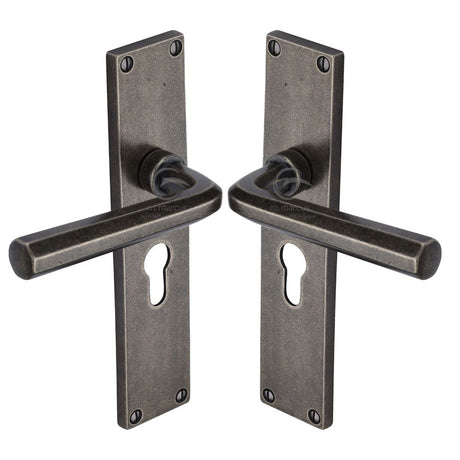 M.Marcus - Rustic Pewter Door Handle Euro Profile Hadley Design