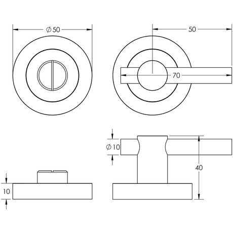 - Bathroom thumb turns, escutcheons, push plates, and cylinder pulls