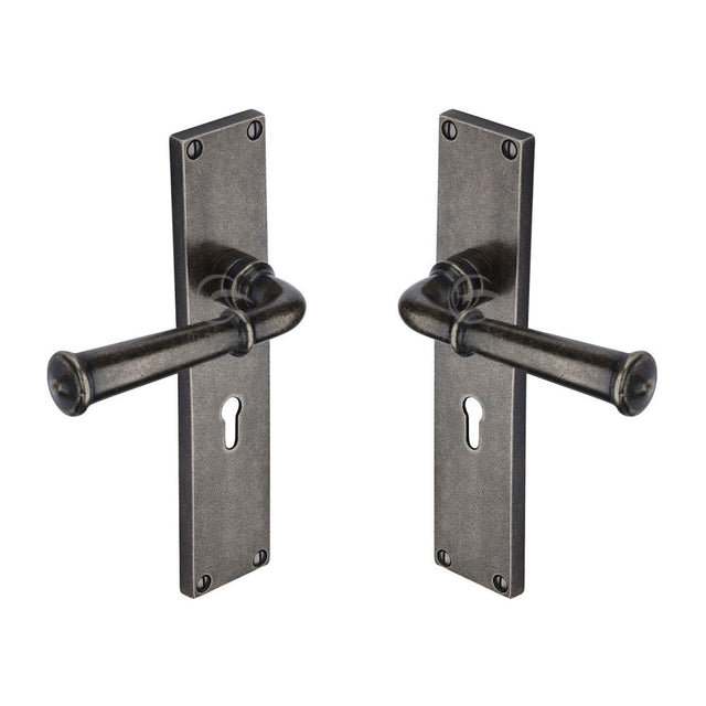 M. Marcus Rustic Pewter Door Handle Lever Lock Ashfield Design