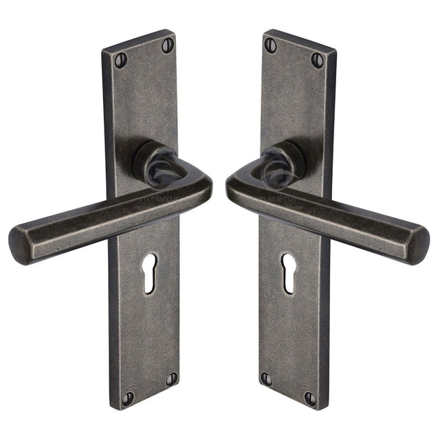 M. Marcus Rustic Pewter Door Handle Lever Lock Octave Design