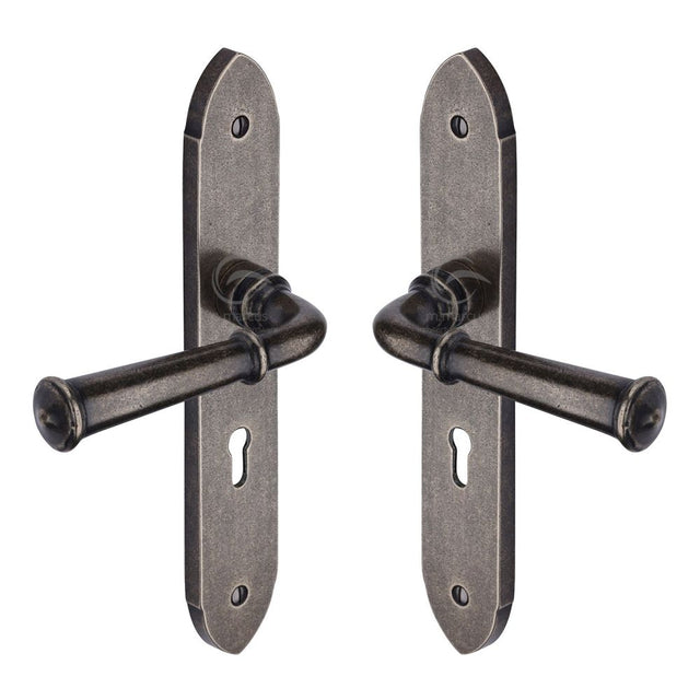 M. Marcus Rustic Pewter Door Handle Lever Lock Hadley Design